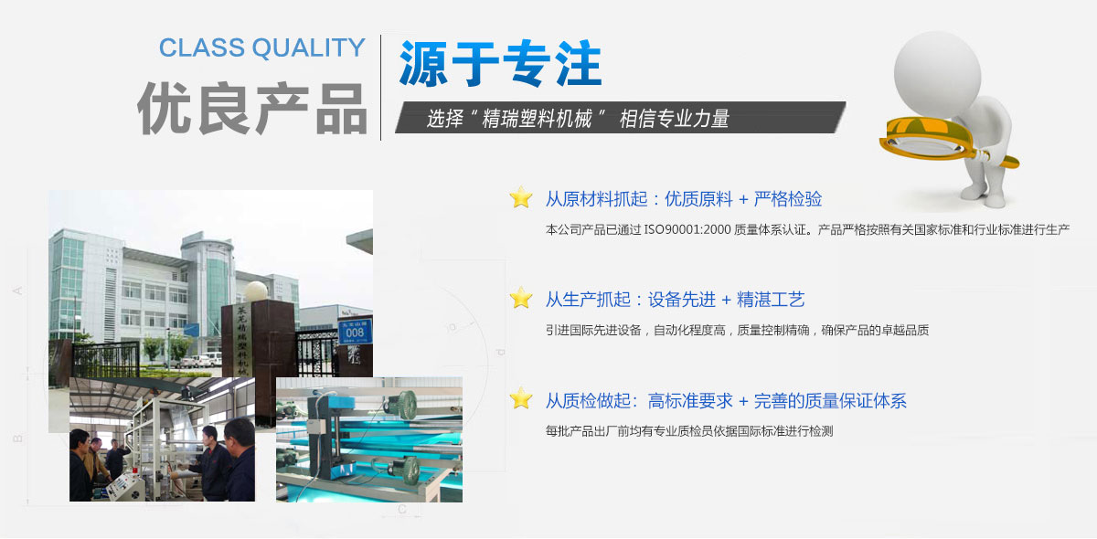 山東精瑞塑料機(jī)械有限公司是集研發(fā)、設(shè)計(jì)和生產(chǎn)管、膜、絲、帶、板、中空和電線電纜等塑料機(jī)械及塑料模具于一體的專業(yè)公司。公司匯集了一批專業(yè)的設(shè)計(jì)人員和研發(fā)人才,熟練的操作工人和經(jīng)驗(yàn)豐富的安裝調(diào)試人員以及專業(yè)化的售后服務(wù)隊(duì)伍,保證了產(chǎn)品的高品質(zhì)、高性能,實(shí)現(xiàn)了快捷高效的售后服務(wù)。公司不斷研發(fā)新產(chǎn)品,產(chǎn)品暢銷全國二十幾個(gè)省、市、自治區(qū),并出口俄羅斯、敘利亞、新加坡、非洲和東南亞等地區(qū),公司擁有自營(yíng)進(jìn)出口權(quán)。